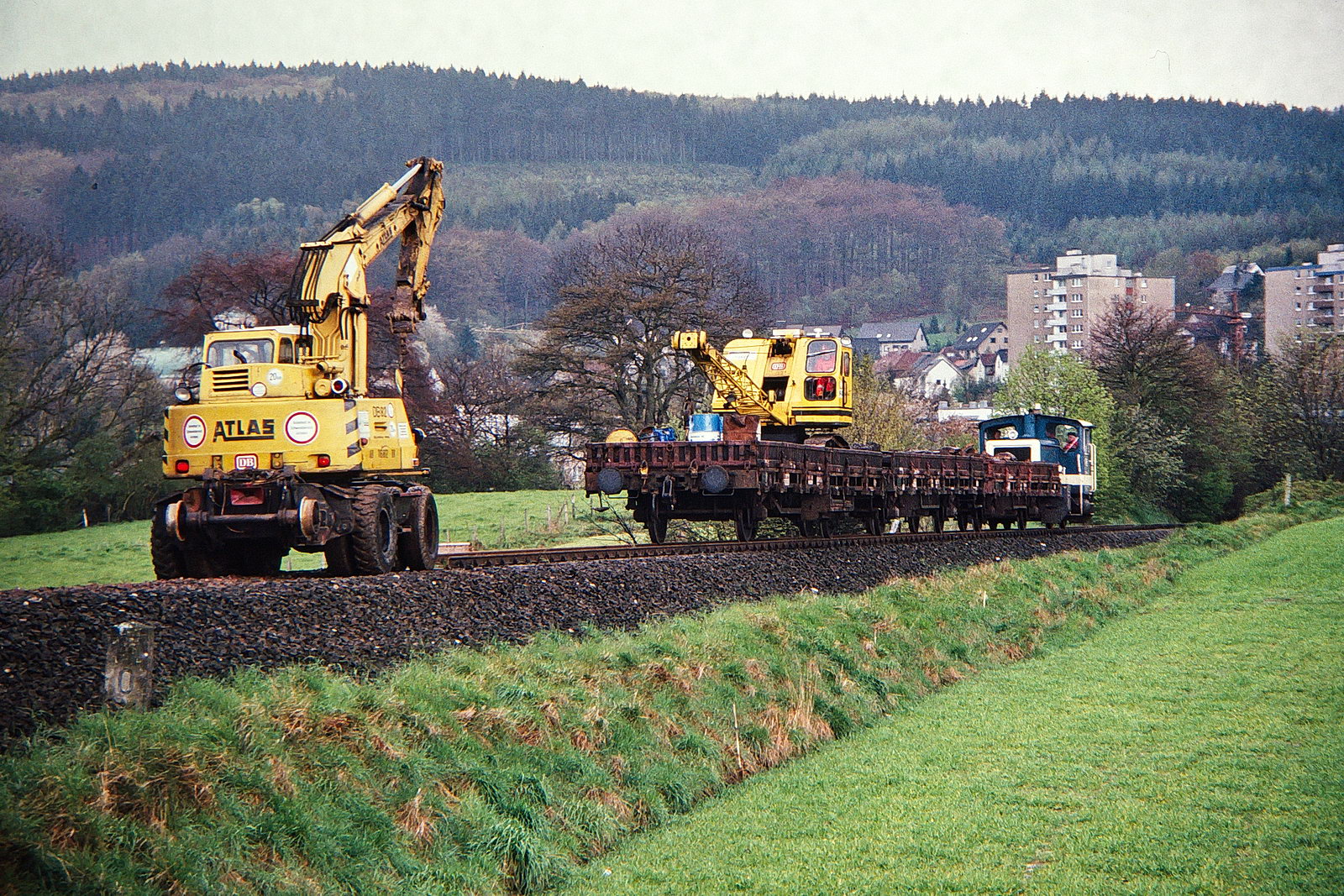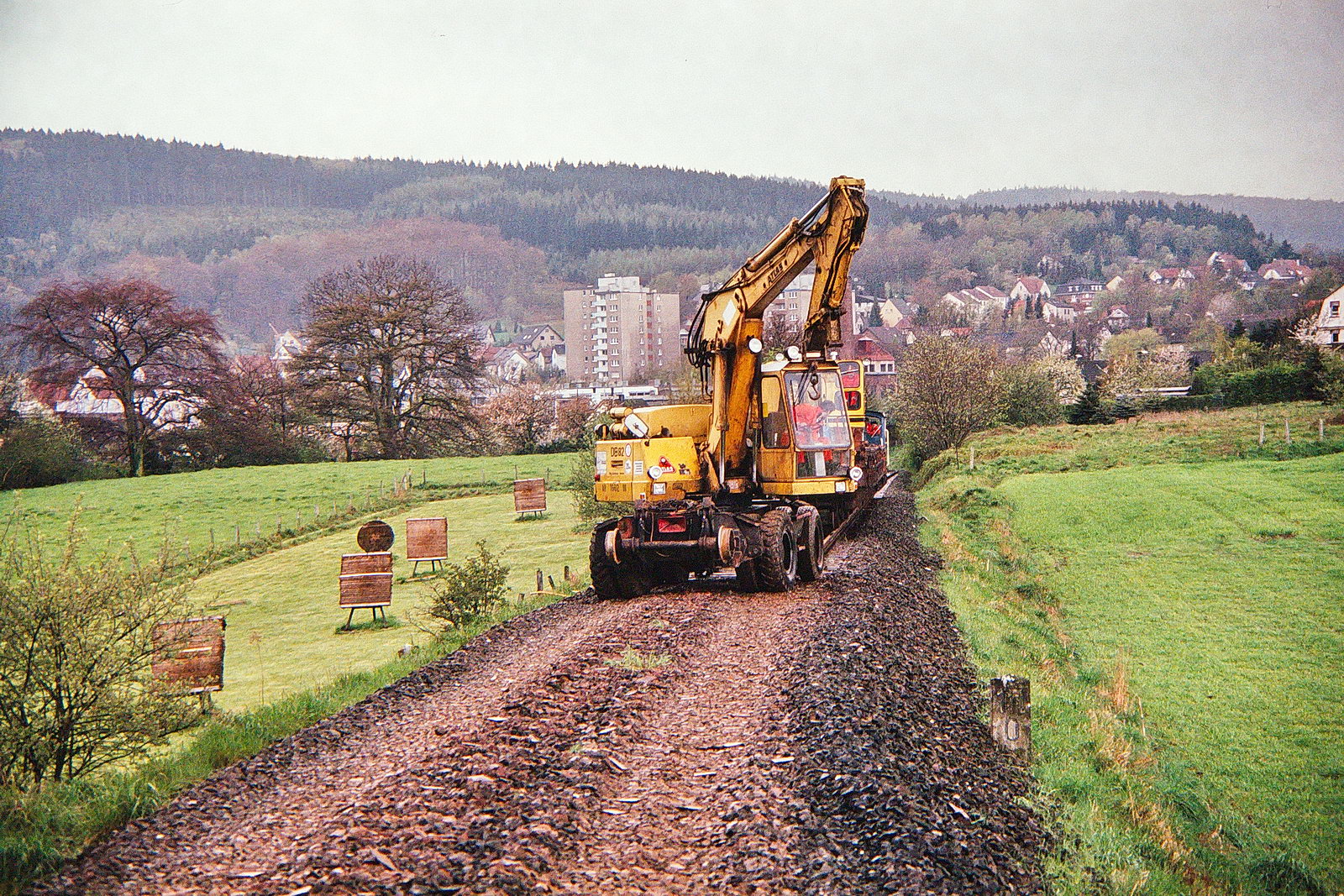 Abbaus der Westiger Schleife nach der Still-Legung. 332 125 bewegt den Zug.