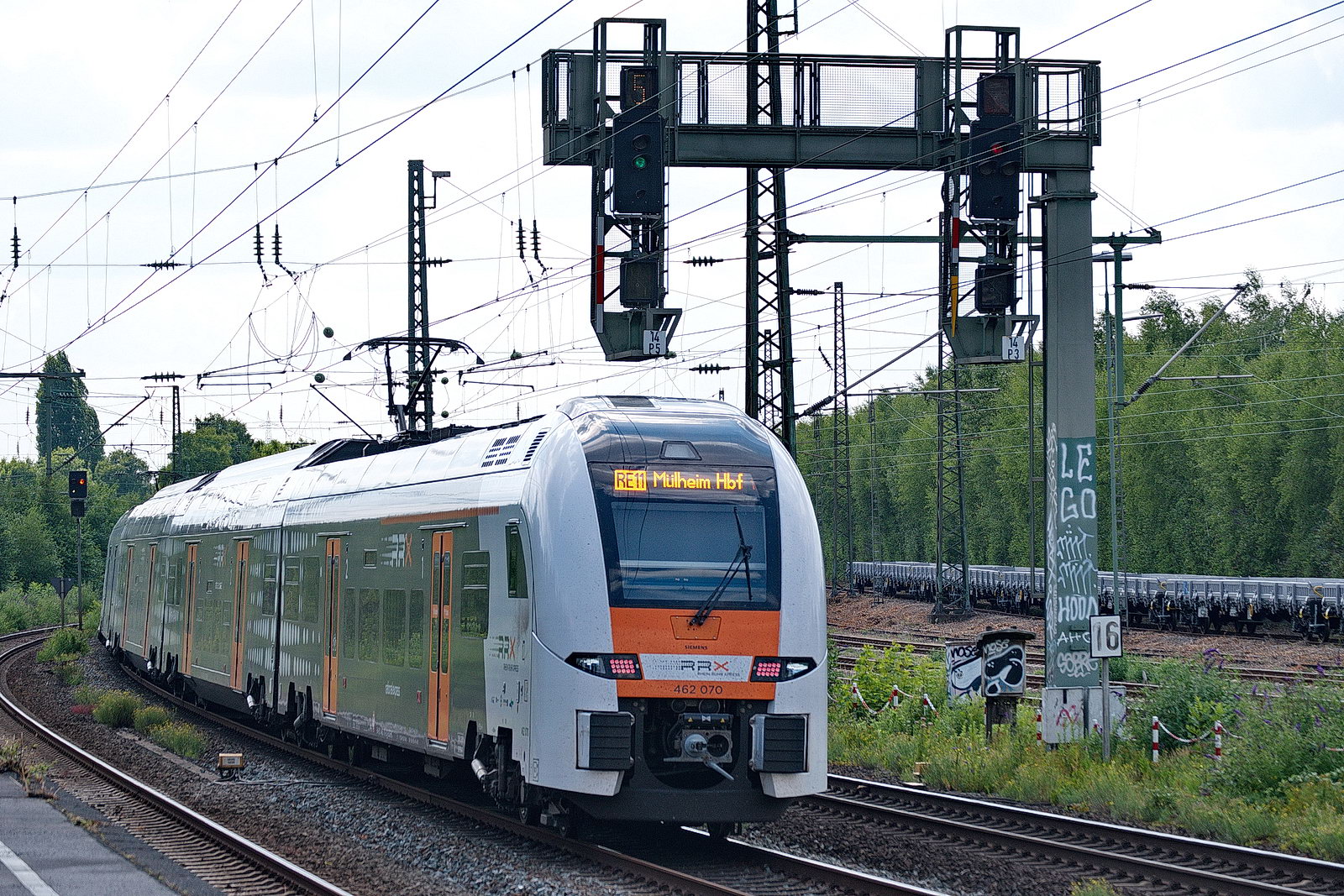 427 108 und 426 106 bleiben auf der Strecke stehen, nach 15 Minuten geht es weiter. 462 070 rollt auf dem Gegengleis am RE 16 vorbei.