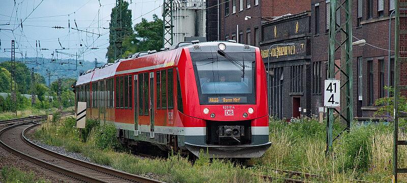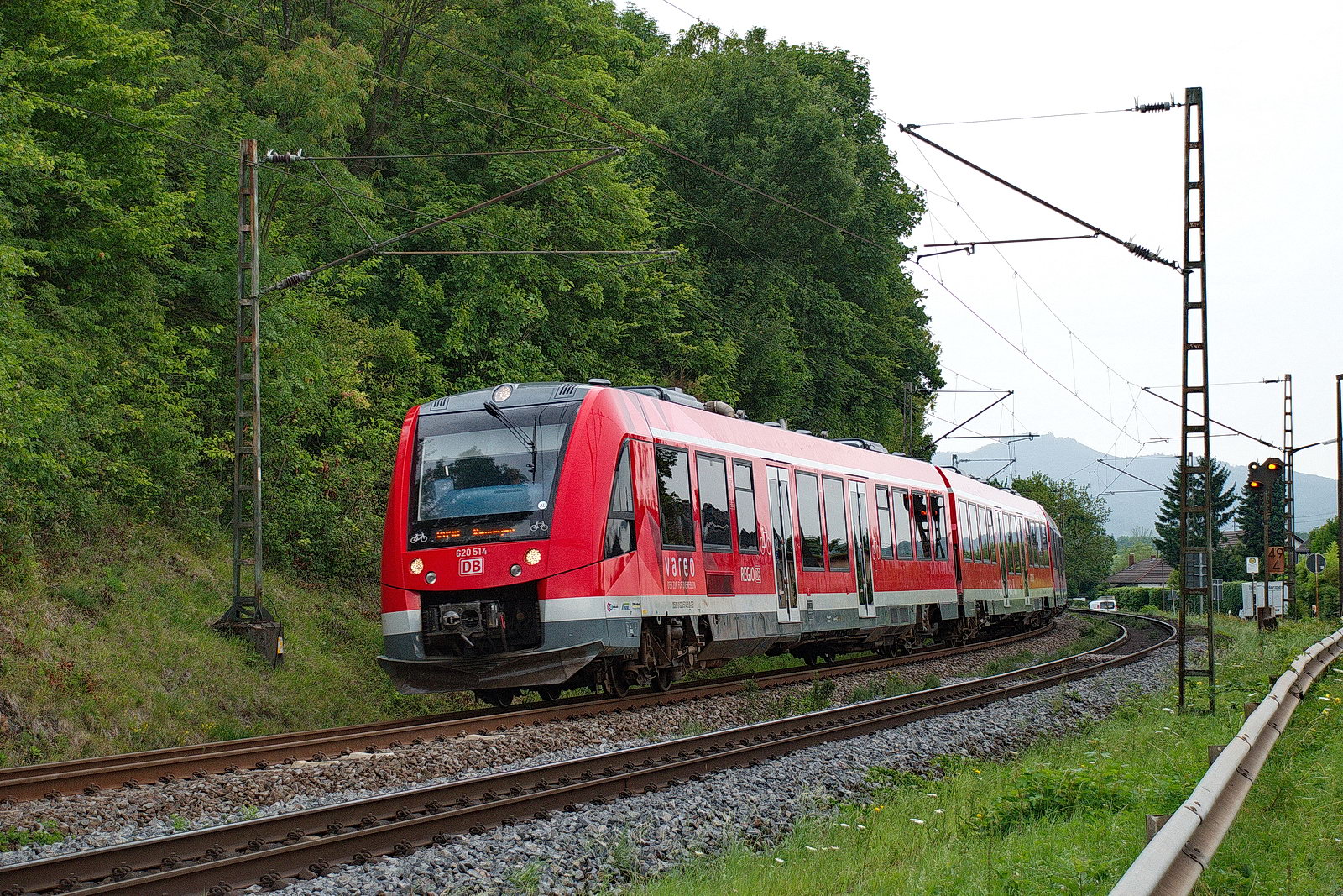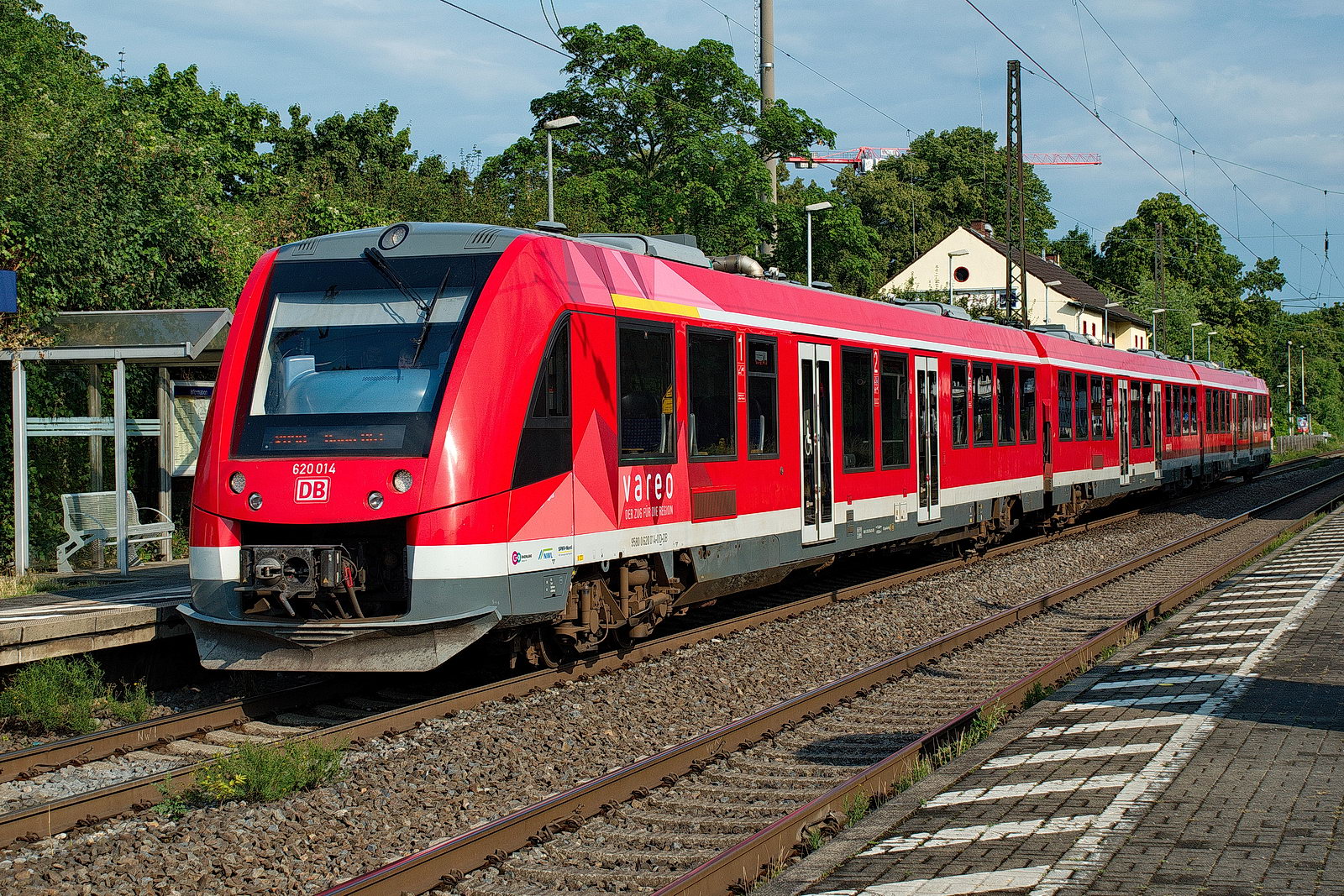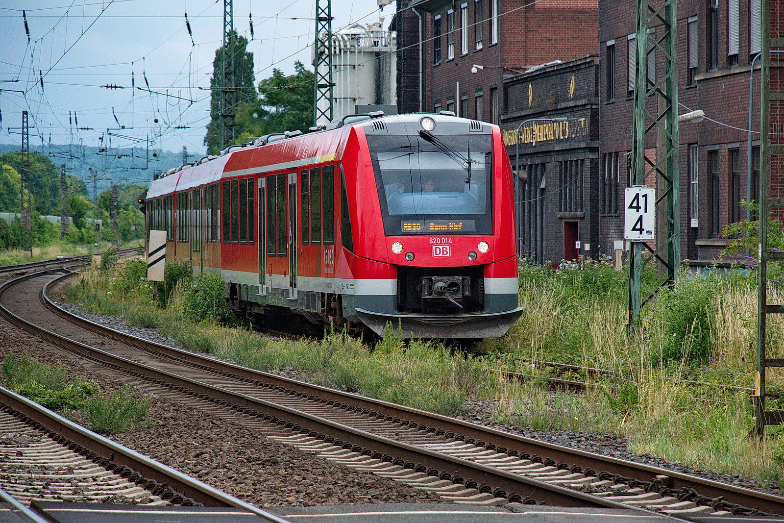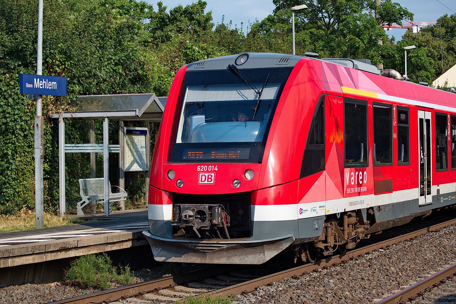 Ein RE 5 blockiert in Bonn-Mehlem das Gleis 2, dieser RB 30 wird über Gleis 3 "umgeleitet". 620 014