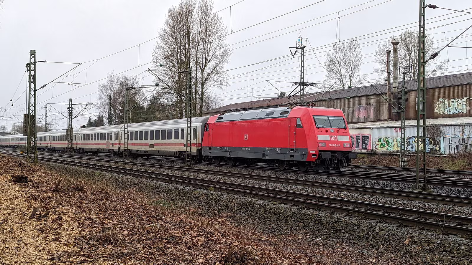 EC 9, umgeleitet über Huckarde, mit 101 064 (vorne) und 101 095 (hinten). An vorletzter Stelle hängt eine unbekannte 101. 3427 002 rechts,