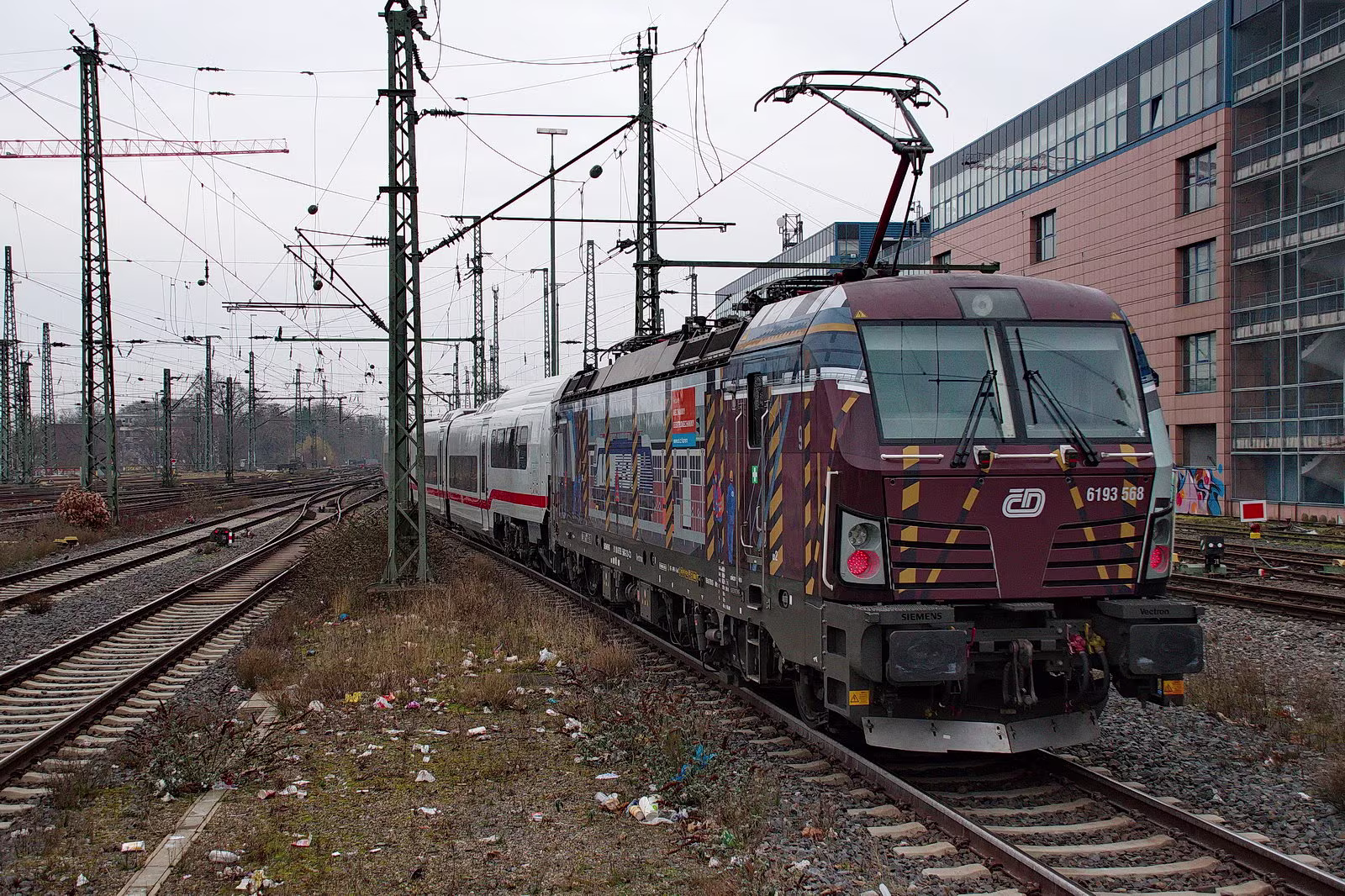 ICE L 1548 wird heute von der 193 568 gezogen. 193 574 unterstützt am Schluss.