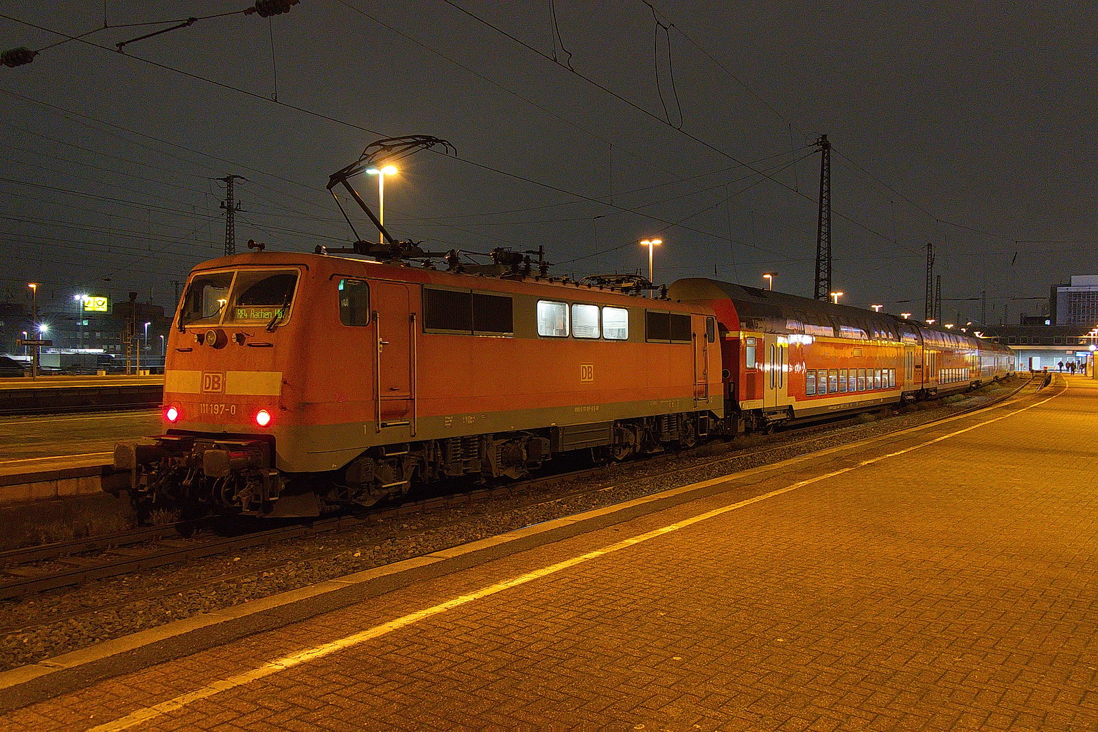 Abschied nehmen: der letzte lokbespannte RE 4 verlässt Dortmund Hbf und rollt nach Aachen. 111 197 zieht.