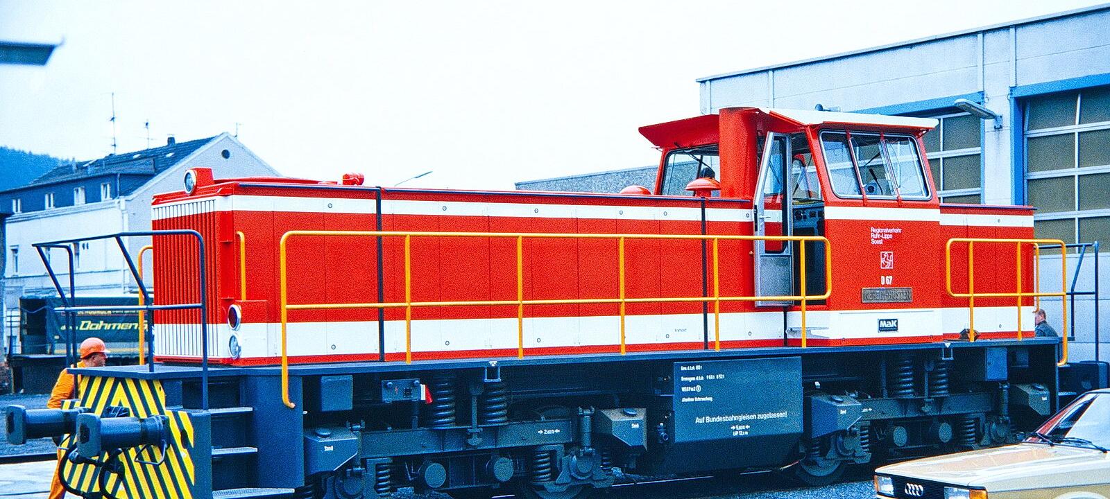 1986-30-019 Arnsberg Neheim-HüstenDie neue D 67 der RLG trifft ein. 1986-30-020 Arnsberg Hüsten RLGDie neue D 67 der RLG trifft ein. 1986-30-022 Arnsberg Hüsten RLGDie neue D 67 der RLG trifft ein. 1986-30-027 Arnsberg Hüsten RLGD 63 und die neue D 67 1986-30-028 Arnsberg Hüsten RLGD 67 bringt den Kohlzug nach Arnsberg zur Feldmühle. 1986-30-029 Arnsberg Hüsten RLGD 67 bringt den Kohlzug nach Arnsberg zur Feldmühle. 1986-30-030 Arnsberg Hüsten WestD 67 bringt den Kohlzug nach Arnsberg zur Feldmühle. 1986-30-031 Arnsberg BruchhausenD 67 bringt den Kohlzug nach Arnsberg zur Feldmühle. 1986-30-032 Arnsberg NiedereimerD 67 bringt den Kohlzug nach Arnsberg zur Feldmühle. 1986-30-033 Arnsberg Altes FeldD 67 bringt den Kohlzug nach Arnsberg zur Feldmühle. 1986-30-034 Arnsberg Altes FeldD 67 bringt den Kohlzug nach Arnsberg zur Feldmühle. 1986-30-035 Arnsberg Altes FeldD 67 bringt den Kohlzug nach Arnsberg zur Feldmühle. 1986-30-036 Arnsberg Altes FeldD 67 bringt den Kohlzug nach Arnsberg zur Feldmühle. 1986-30-037 Arnsberg Altes FeldD 67 bringt den Kohlzug nach Arnsberg zur Feldmühle. 1986-30-038 Arnsberg Altes FeldD 67 bringt den Kohlzug nach Arnsberg zur Feldmühle. 1986-30-039 Arnsberg Altes FeldD 67 bringt den Kohlzug nach Arnsberg zur Feldmühle. 1986-30-040 Arnsberg Altes FeldD 67 bringt den Kohlzug nach Arnsberg zur Feldmühle. 1986-30-041 Arnsberg Altes FeldD 67 bringt den Kohlzug nach Arnsberg zur Feldmühle. 1986-30-042 Arnsberg BruchhausenD 67 bringt den Kohlzug nach Arnsberg zur Feldmühle. 1987-35-042 Arnsberg MüschedeSonderzug Sundern-Travemünde RLG D66 Neue Bilder Updates: 05.12.2025: Bilder aus Bochum Hbf eingestellt.