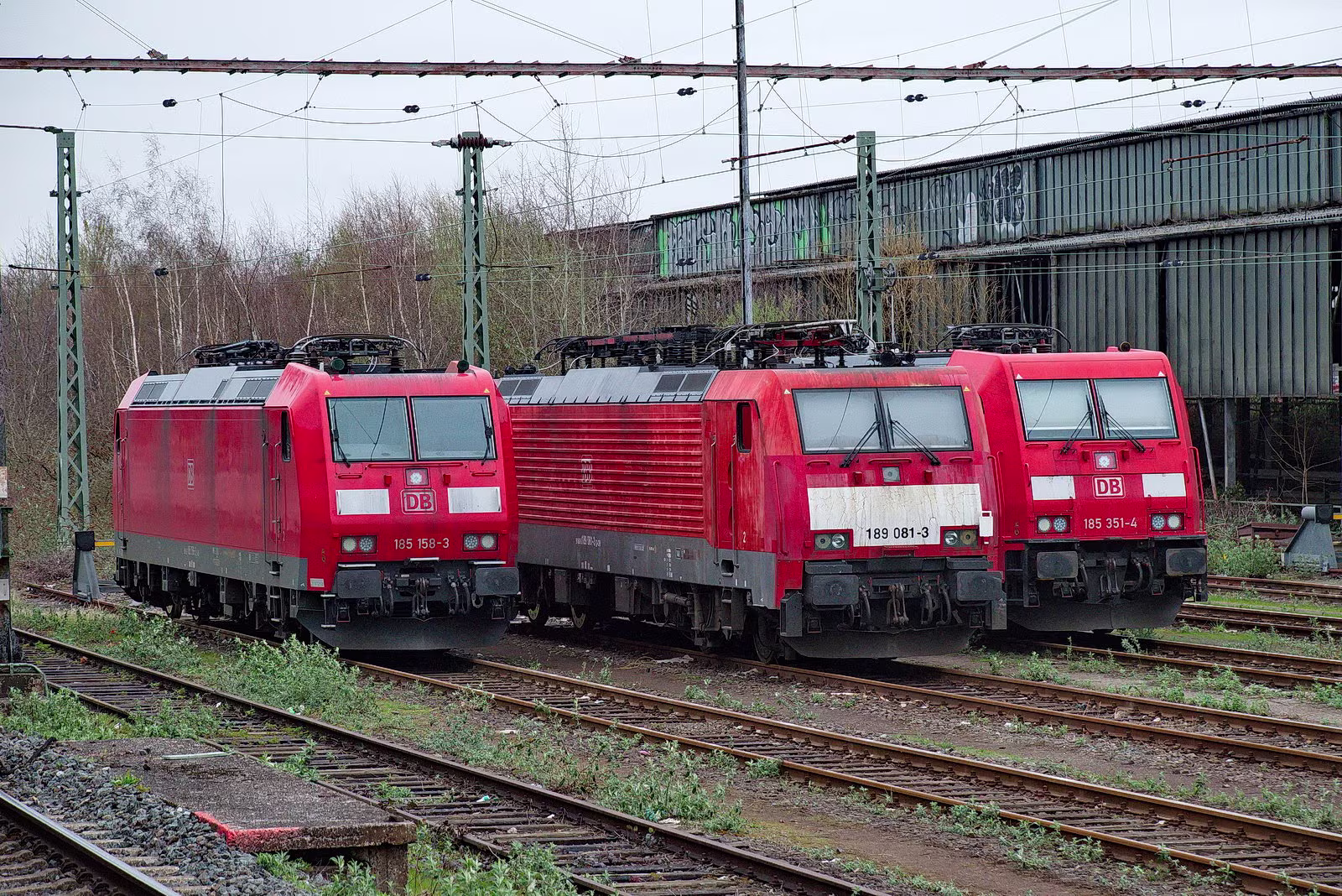 185 158, 189 081 und 185 351 warten auf ihren nächsten Einsatz.