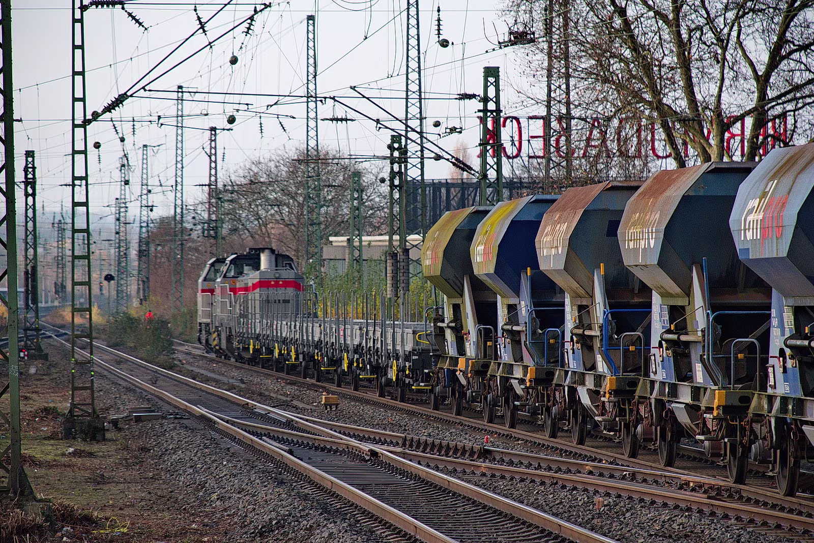 271 022 und 4120 001 mit Schotterzug Richtung Riemke.