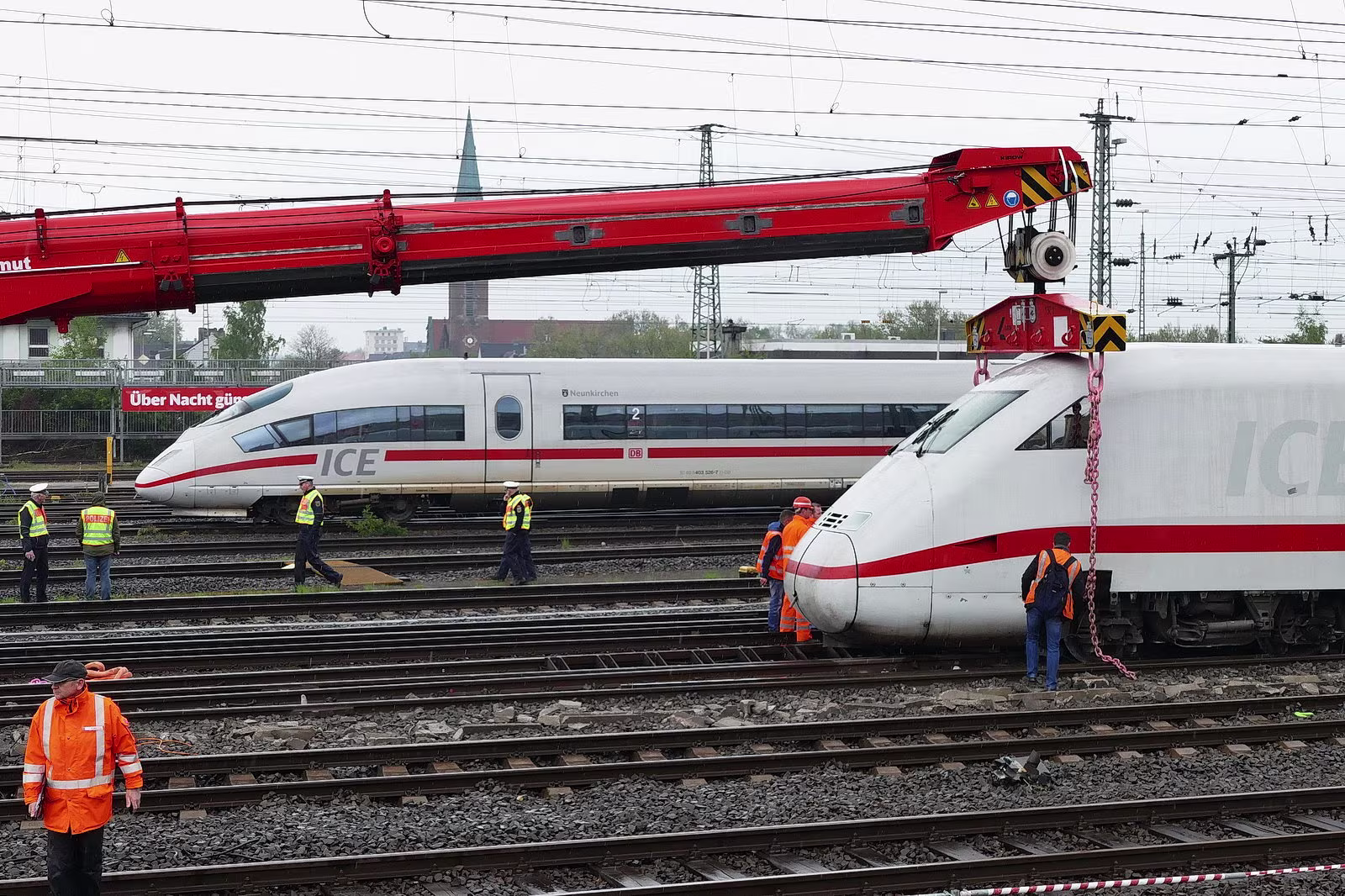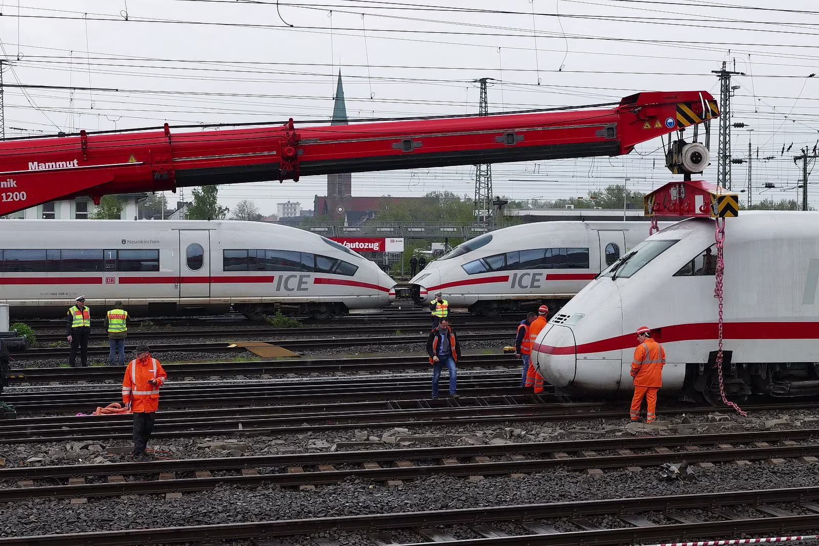 Aufräumarbeiten nach Entgleisung, 402 029 und 808 029 sind beteiligt.